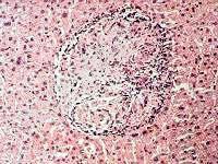 - 单项选择题图为布氏杆菌病所致肝脏病变的病理图片,下列说法错误的是 ( )
