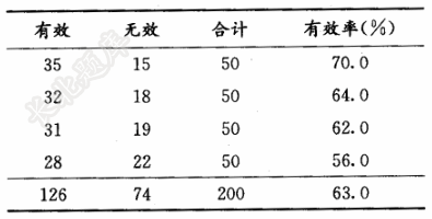 - 单项选择题本次比较4种疗法治疗慢性胃炎的效果,观察了200例该病患者,结果如下表。该资料进行X2检验。自由度为