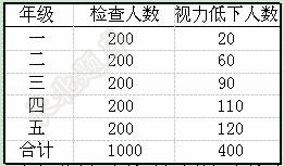 - 单项选择题对某小学全体学生进行视力检查,五个年级学生视力低下情况如下