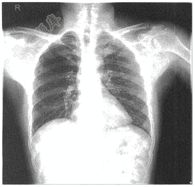 - 单项选择题男,32岁。眼部外伤1天入院。术前检查,胸片如图,诊断为( )
