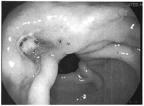 - 单项选择题男,68岁。因“上腹痛1年,解黑便伴头晕3天”入院。长期烟酒史。查体:神志清,颈静脉无充盈,全腹无压痛及反跳痛。入院查胃镜所示如图。考虑诊断( )