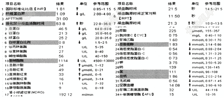 - 单项选择题患者男性,58岁。因“腹胀1月”来院就诊,患乙肝30余年。体检:神清,巩膜轻度黄染,腹部膨隆,腹部静脉曲张,肝肋下未及,脾肋下2指,移动性浊音阳性。患者的凝血功能和生化全套报告如图,关于患者的肝功能Child-Pugh分级表述正确的是( )