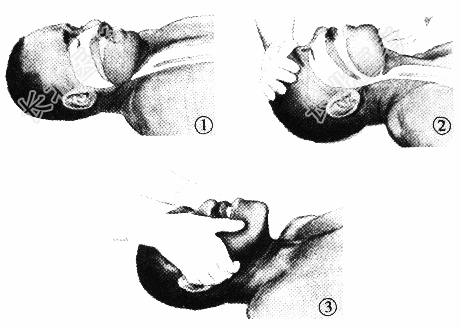 - 单项选择题患者男,59岁。因交通意外,人事不省,查体:颈动脉搏动消失,呼吸停止,疑颈部损伤。实施心肺复苏过程中,打通气道的方式正确的选择(如图所示)是