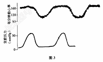 - 多项选择题3.【提示】进入第二产程1小时55分钟后,宫缩时见先露拨露3cm×4cm, 助产士观察到的胎心监护结果,见图3所示。