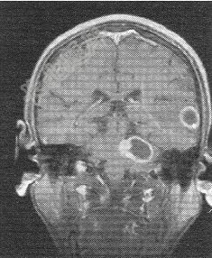 - 单项选择题患者男,72岁。肺癌术后一年余,现出现头晕头痛,MR图像如下,最有可能的诊断是