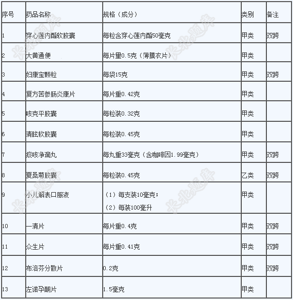 - 单项选择题2.在上述表格中,穿心莲内酯软胶囊、妇康宝颗粒、痰咳净滴丸等药品的类别为“甲类”,备注为“双跨,”其中的“甲类”是指( )