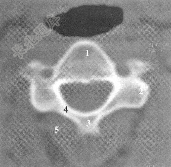 经第3颈椎的横断面CT图像,图注2所标注的结构是()