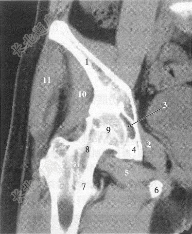 经股骨头后部的冠状断层上,图注11所标注的解剖结构是()