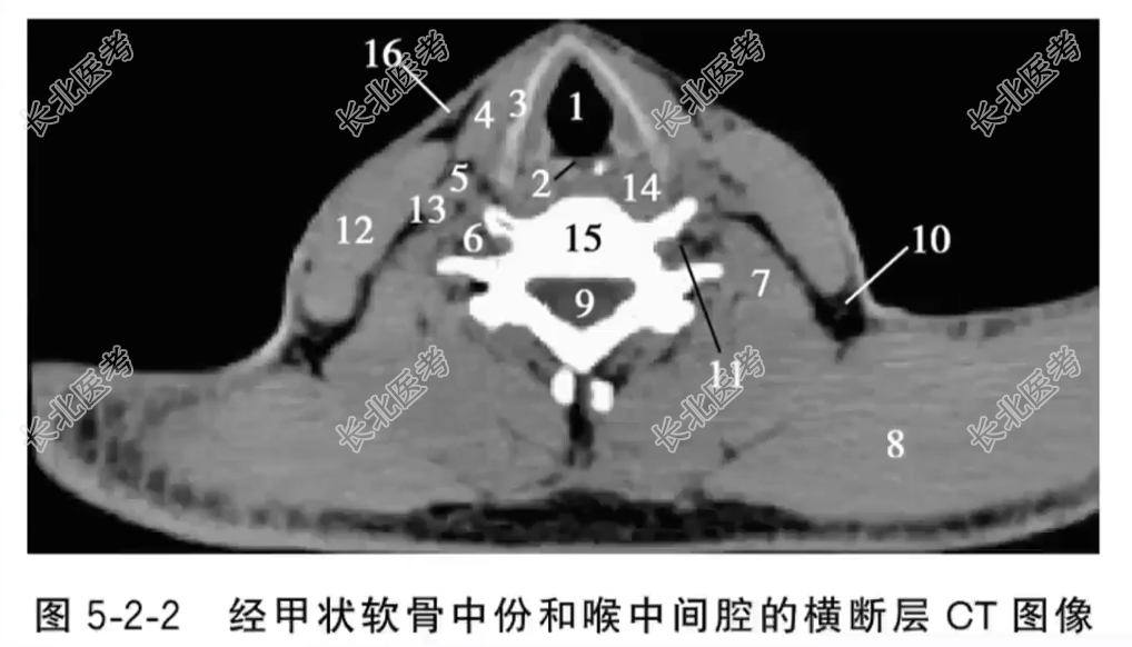 - 单项选择题经甲状软骨中份和喉中间腔的横断层CT图像中,标记为15的结构是