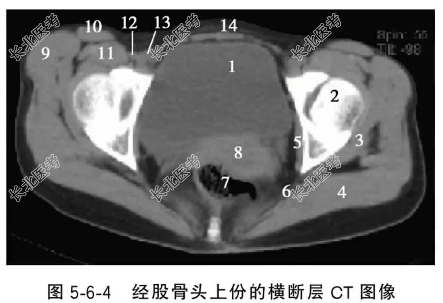- 单项选择题经股骨头上份的横断层CT图像中,标记为5的结构是什么