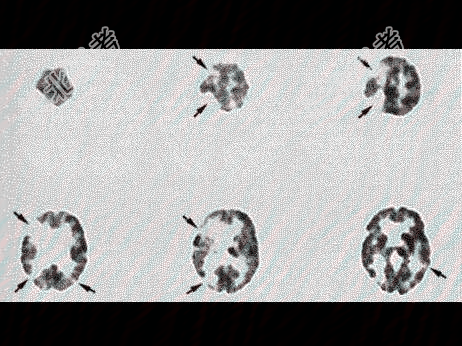 - 单项选择题男,70岁, 反应迟钝,有高血压病史16年, 行99Tcm-HMPAO脑血流灌注显像如图,诊断为( )