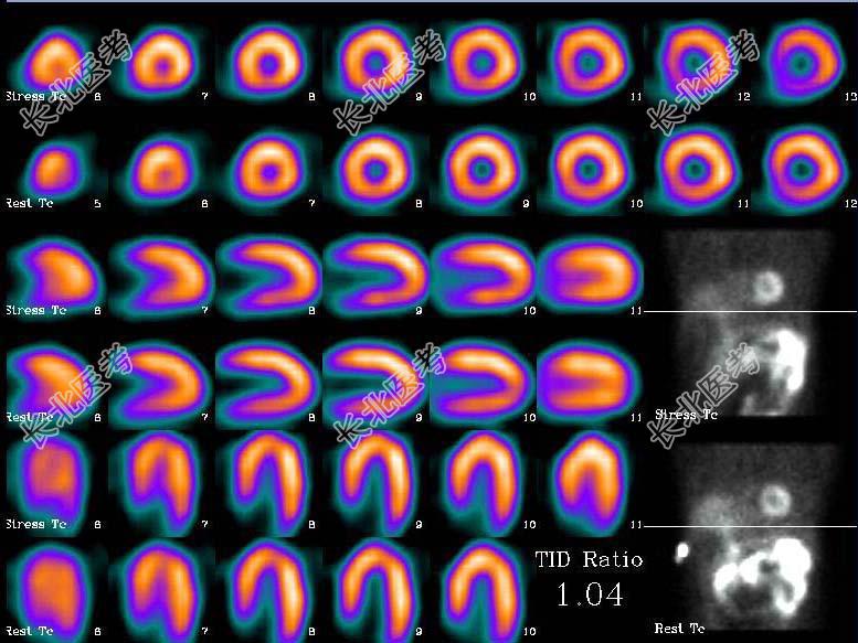 单项选择题一男性患者的99Tcm-MIBI运动-静息心肌灌注显像如图,你的诊断为 ( )