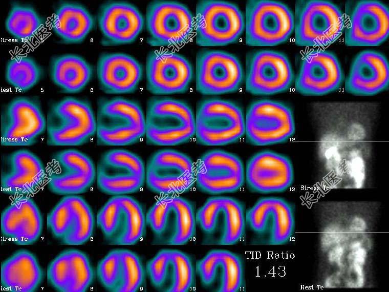 - 单项选择题患者58岁,阵发性心前区疼痛1年, 心电图阴性,行99Tcm-MIBI心肌显像如图, 可能的诊断为 ( )