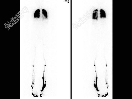 - 单项选择题女,43岁, 左下肢肿胀。行99Tcm-MAA双下肢深静脉显像如图,可能的诊断为 ( )