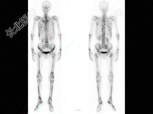 - 多项选择题男,68岁, 肺癌术后半年,诉双下肢疼痛3个月, 行全身骨显像如图,可能的诊断是 ( )