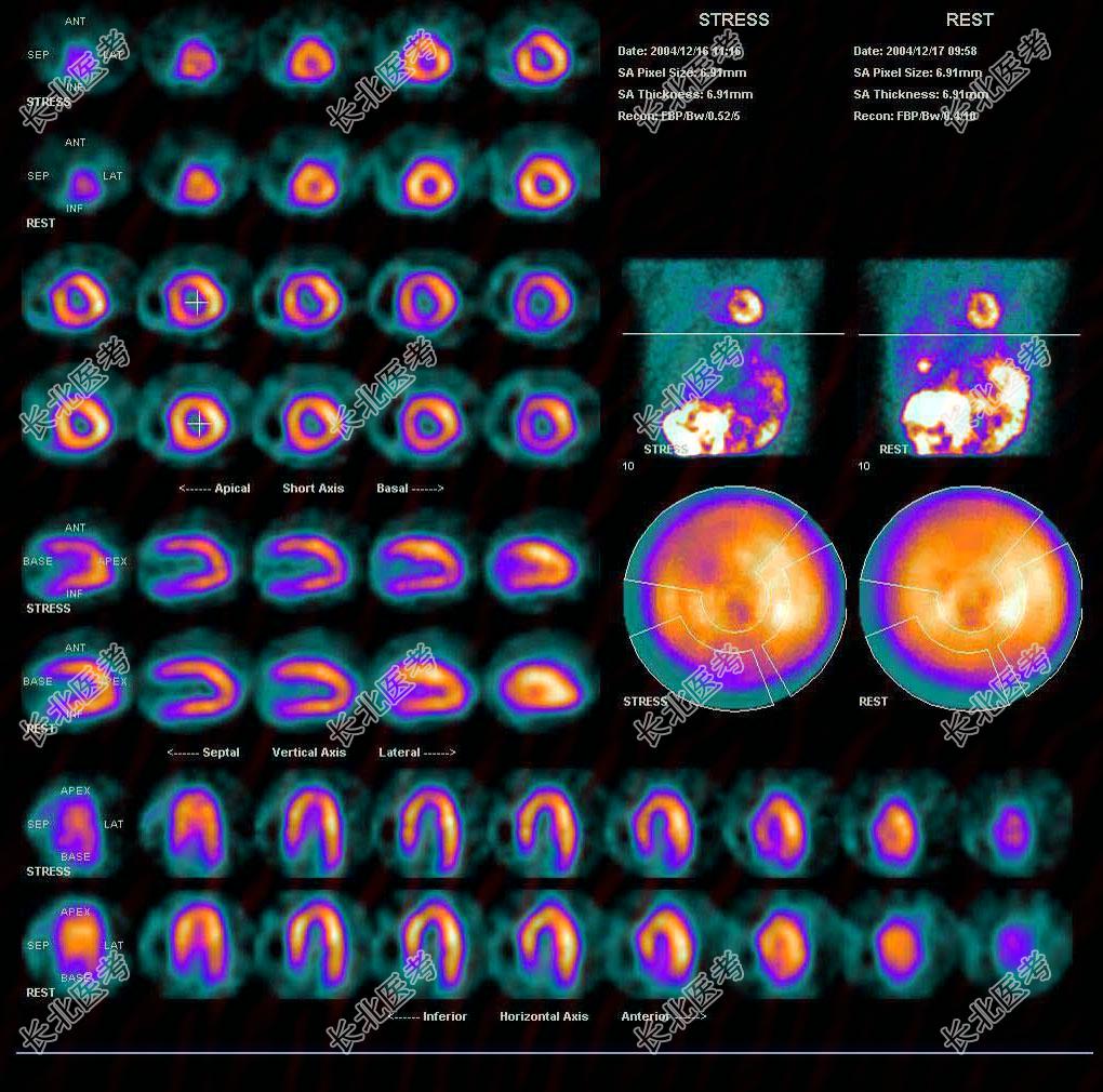 多项选择题男性,41岁, 劳力性心绞痛,有高血压、高血糖、高血脂, 行Tcm-MIBI心肌运动、静息显像如图,最可能的诊断是 ( )