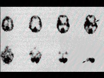 多项选择题女,72岁, 突发头痛,意识丧失24h入院, 行Tc-HMPAO脑断层显像如图,7天后复查如图, 正确的诊断是 ( )