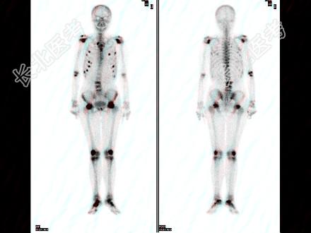 - 多项选择题女性,72岁, 双下肢间歇性钝痛3个月,现行走困难, SCr256μmol/L,HGB68g/L, 骨显像最可能的诊断是 ( )