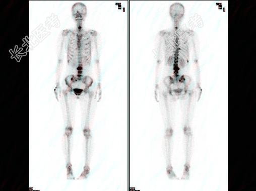 多项选择题女,28岁, 左乳癌术后1年,无明显不适, 行Tc-MDP骨显像如图,可能的诊断是 ( )