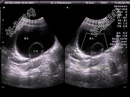 - 单项选择题女性,于膀胱输尿管位置见一囊性光团, 有规律收缩,增大。如图所示, 应要考虑为 ( )