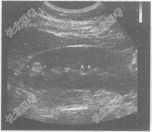 - 以下不符合肾盂、肾盏内小结石的超声表现的
