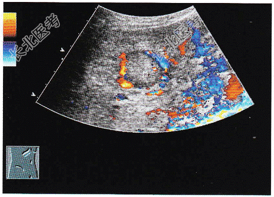 - 肾细胞癌的典型声像图特征是: ①肾内圆