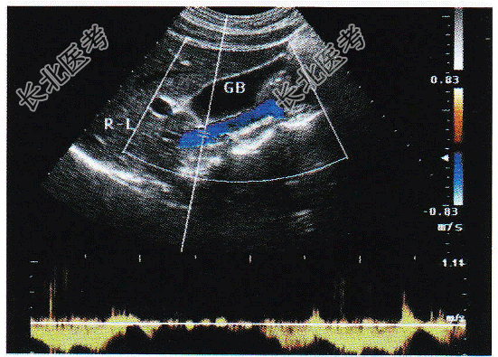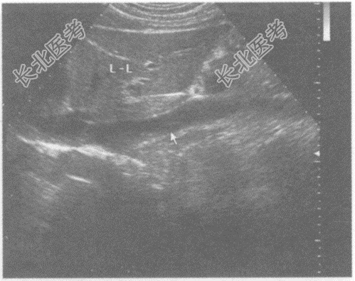 - 心下型的完全型肺静脉异常回流,声像图显示