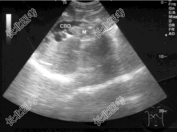 - 单项选择题女,47岁, 皮肤、巩膜黄染,进行性加重2个月余, 腹痛、腹胀,既往有胆结石病史。B超检查如图所示, 根据超声声像图,诊断为
