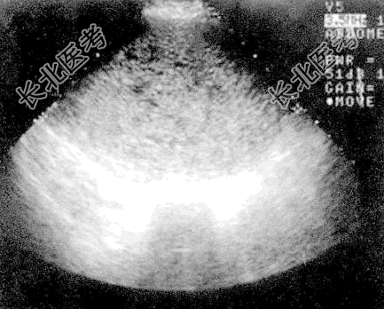 - [材料题] 女性,31岁,阴道流血1月余,妇科检查子宫孕5个月大小,质软,声像图见图。