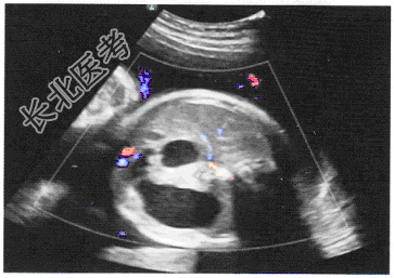 - 单项选择题患者,女, 30岁,孕28周, 胎儿超声检查如图,最可能的诊断是