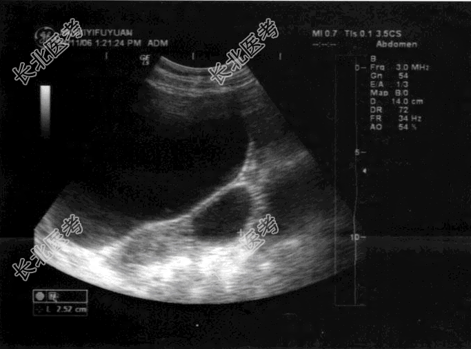 - 单项选择题女,25岁, 超声检查如图,最可能的诊断为