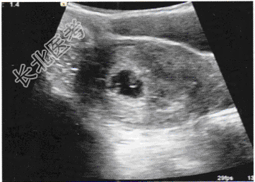 - 单项选择题女,23岁, 停经45天,阴道无异常分泌物, 子宫附件声像图见下图,图中所示为