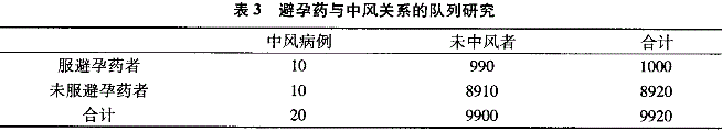 - 单项选择题为确定一种新发明的避孕药是否增加了中风的危险,进行了一项队列研究。选取生育年龄的一个随机样本, 发现9920名妇女适于作为研究对象,其中1000名定期使用该种避孕药, 其他人不用。对整个样本人群随访10年,结果见表3。