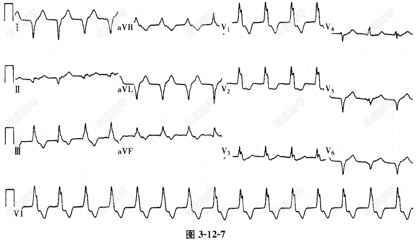 单项选择题急性心肌梗死患者溶栓治疗中记录到的心电图如图3-12-7所示,正确的诊断为