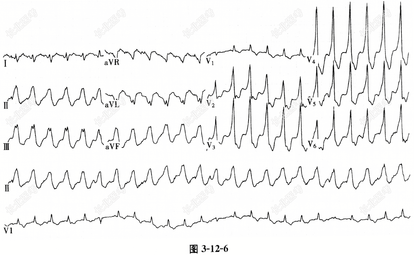 单项选择题患者,男, 66岁,阵发性心慌数次, 晕厥1次。心慌时心电图如图3-12-6所示,应诊断为