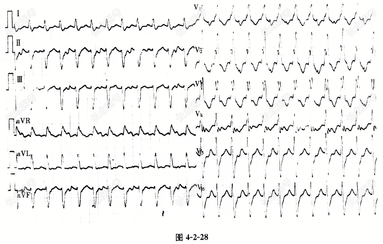 - 单项选择题患者,男, 36岁,心悸2小时就诊, 不伴气促、黑矇。心电图见图4-2-28,正确的诊断为