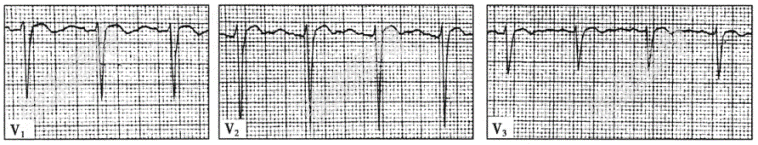 - 预激综合征合并三度房室传导阻滞的心电图表