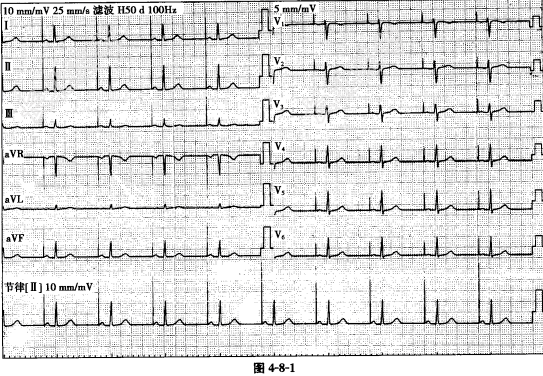 - 单项选择题患者,男, 57岁,因病态窦房结综合征植入起搏器3年。记录心电图如图4-8-1所示, 提示