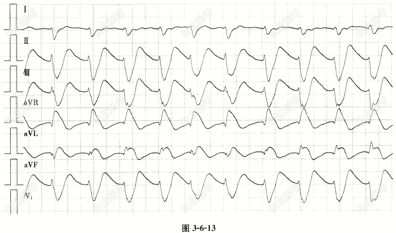 - 单项选择题患者男性,54岁, 慢性肾功能不全、尿毒症期。行血液透析治疗半年,2次/周。近1周未行透析治疗, 患者突发心悸,心电图如图3-6-13所示。最可能的诊断为