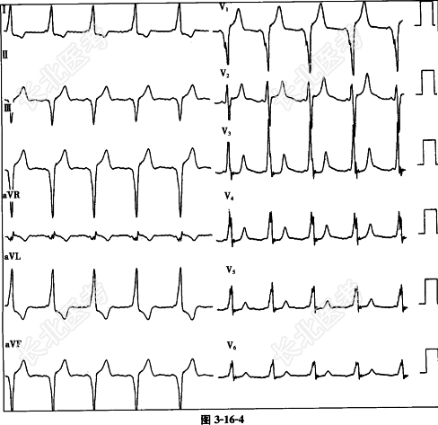 - 单项选择题患者,女, 25岁,阵发性心悸6年。平时心电图显示为预激综合征, 心电图如图3-16-4所示,旁路可初步定位在