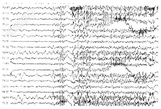 - 单项选择题发作期脑电图如图所示,此发作最有可能为( )。