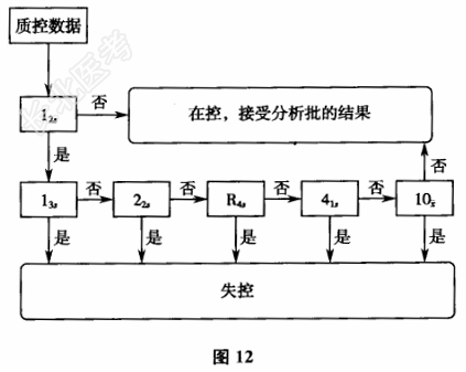 - [材料题] 某检测项目采用如图12所示的质控规则判定室内质控: