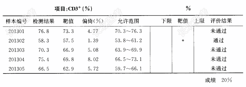 [材料题] 2014年某实验室参加国家卫生计生委临检中心组织的流式细胞术—淋巴细胞亚群室间质评,结果回报见下表。