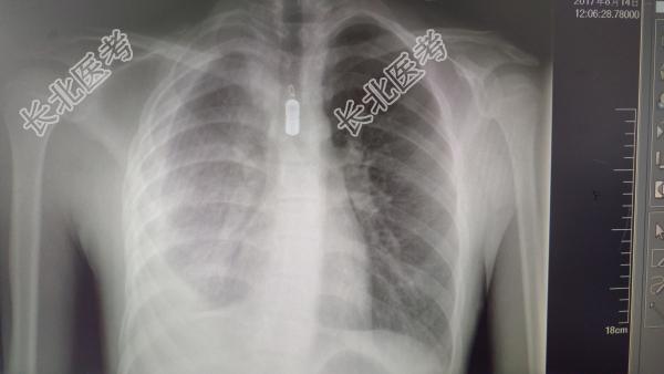 /L,N0.55,L0.45;CRP:10g/LMP-AB1:40阴性肝功能、肾功能正常胸片如上超声:肝胆脾胰腺无异常。