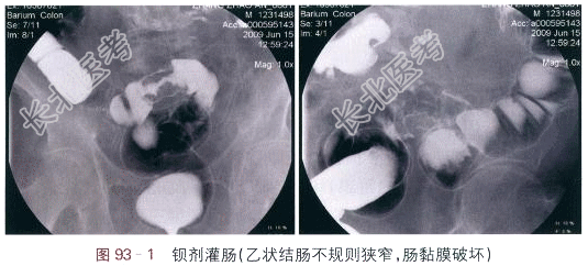 - [材料题] 患者一月便血3次。体格检查:下腹触及肿块,轻压痛。影像学资料如图93-1~图93-2所示。