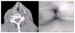 - [材料题] 男性,60岁。声音嘶哑半年,CT表现见下图。