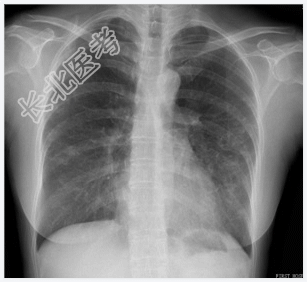 - [材料题] 患者,女性,28岁,咯血2天入院,半年前曾咯血一次。查体:双肺呼吸音粗,左下肺可闻及少许湿啰音。心脏体查无异常。做胸部X光平片检查。