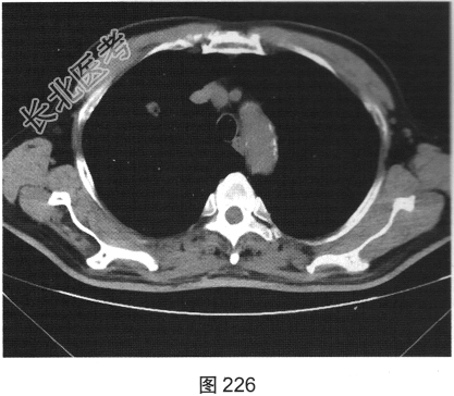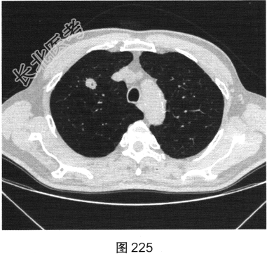 - 简答题2、患者行胸部CT检查,如图225、图226所示。请问该患者CT图像可见什么阳性表现?