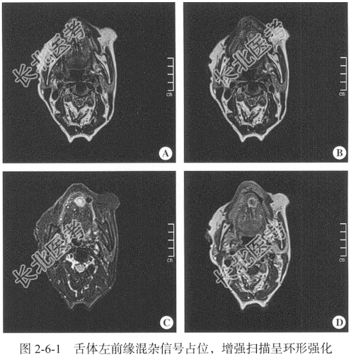 【专科查体】舌体大小正常,左侧舌尖可见葡萄大小卵圆形肿物,活动度差,与周围组织边界不清。舌体可见少量白斑。口腔黏膜未见溃疡