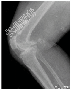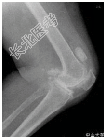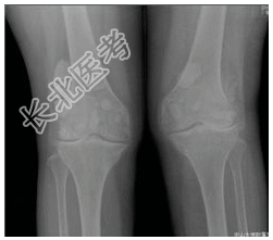 - [材料题] 患者女,55岁,双膝隐痛十余年。查体:双膝压痛,局部软组织肿胀,触之硬物感。行双膝关节正侧位片检查。